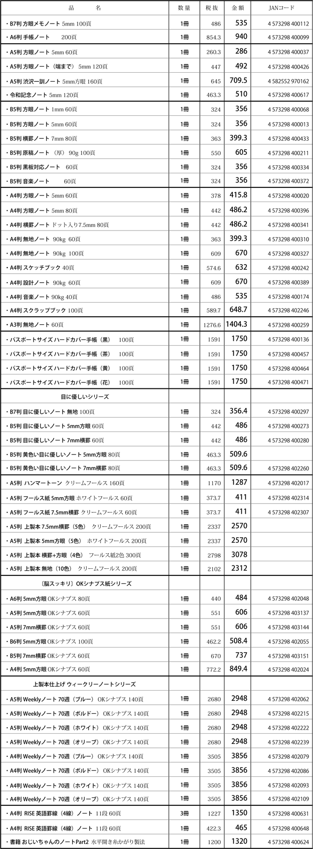 水平開きノート製品の一覧